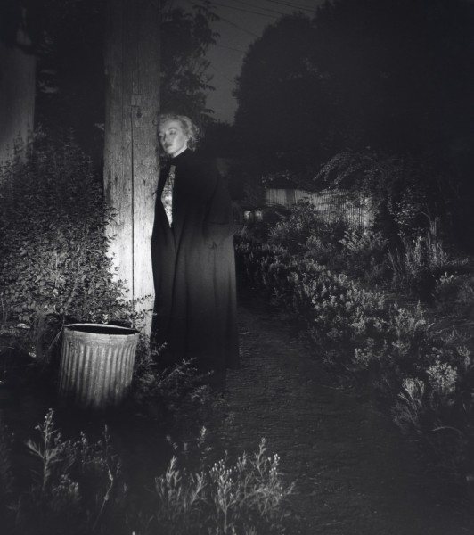 Later, more troubling sides of Marilyn emerged. At 2:30am one morning in 1953, suffering from insomnia, Marilyn called de Dienes and proposed that he take pictures of her in a dark alleyway. Lighting her only with the headlights of his car, the photographs show us a sad and forlorn Marilyn. De Dienes wrote, “Was she just playing a melodrama in those pictures, or was she conscious that something was wrong in her life, that something tragic would happen to her?” These haunting images are the last photographs de Dienes would ever take of her.