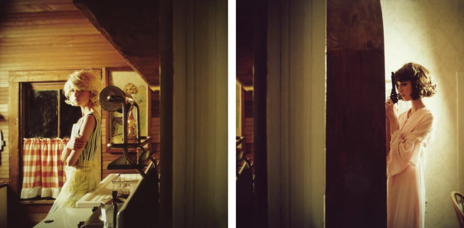 The photographs in Shadows in Paradise reference three films: Ingmar Bergman’s Persona, Robert Altman’s Three Women and David Lynch’s Mulholland Drive. In Rothen’s female-helmed dream world her characters find themselves and lose themselves. These images portray characters that debuted in Rothen’s 2014 book Snow and Rose & Other Tales. When we last saw Rothen’s women they were dancing exuberantly in the nude, celebrating their male-free utopia. Now we see them struggling to stay connected to their idealized notions of self, coping with their shattered illusions, falling deeper into derangement. This new series explores life after happiness, after you get everything you want but nothing is as planned. It asks what it means to be a woman among women in a world where men are banished yet lurking.