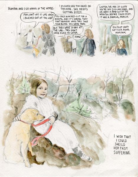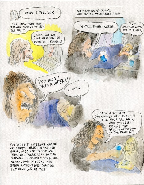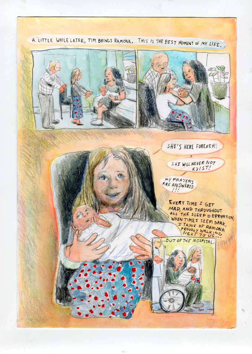 Mother’s Walk—a visceral meditation on all the ramifications of childbirth—was selected for Frontier, a quarterly art and comics monograph series. Weinstein is also the author of three books: Inside Vineyland (Alternative Comics, 2003), a collection of an early comic strip first published in The Seattle Stranger; the teenage memoir Girl Stories (Henry Holt and Co., 2006), which received a starred review from Publisher’s Weekly; and an impossible-to-describe, science-fiction epic called Goddess of War (Picturebox, 2008). She has also received two Ignatz Awards and multiple award nominations. In 2015, Weinstein was awarded the Gold Medal from The Society of Illustrators for Carriers, her five-part webcomic about cystic fibrosis that was first published in Nautilus.