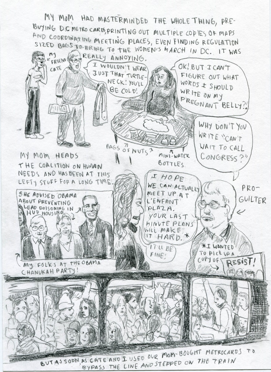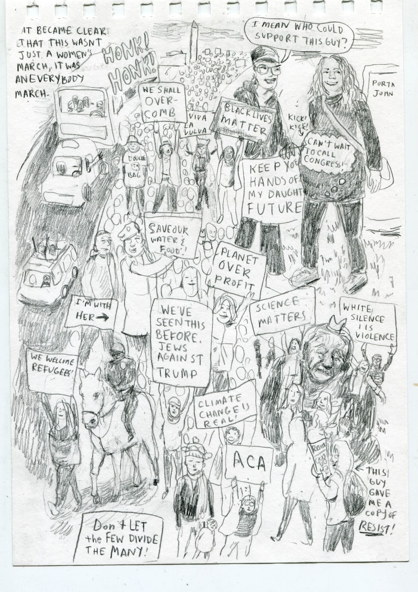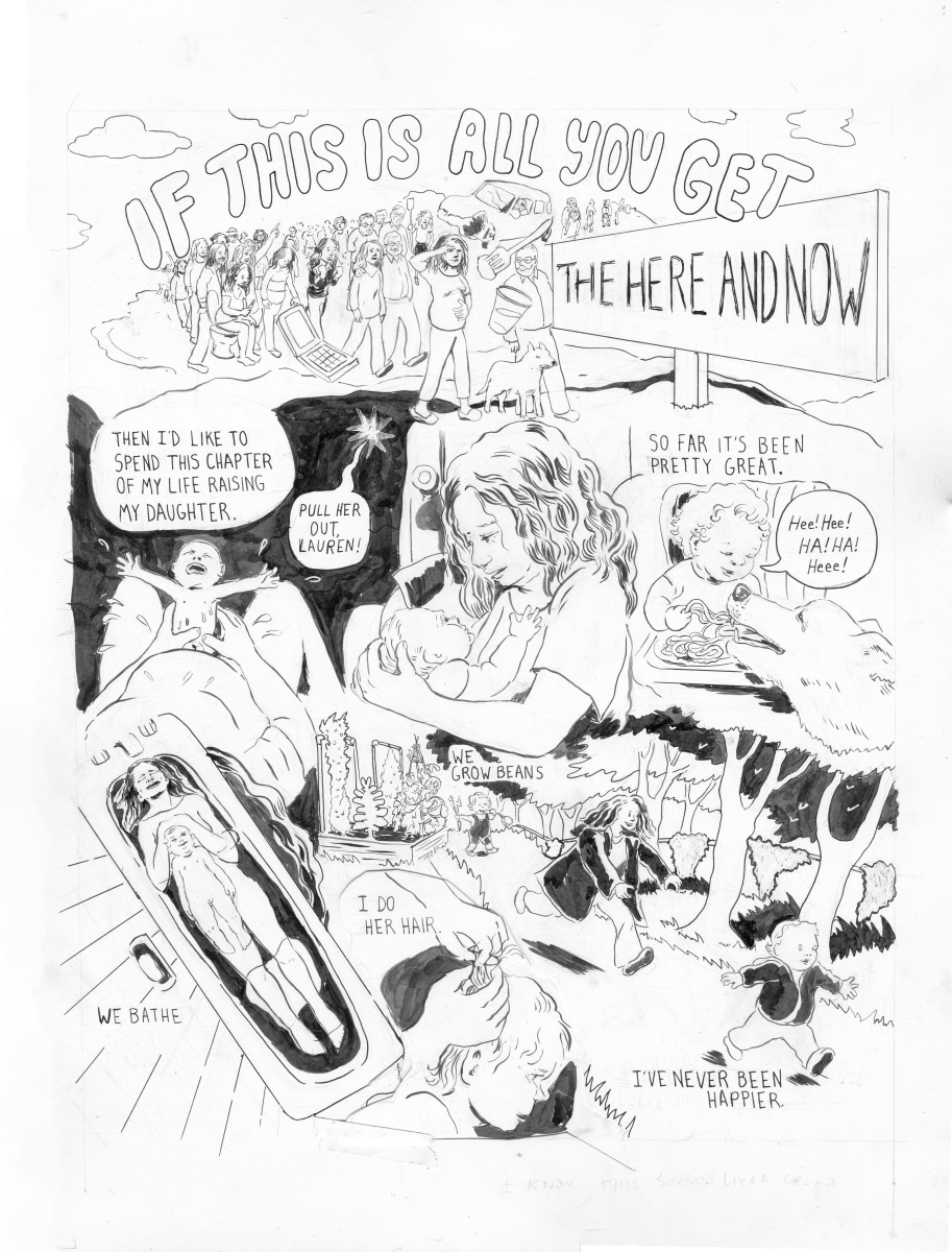 Her acclaimed comic Normel Person was the last weekly comic strip to run in The Village Voice. The comic was drawn in response to the tumultuous sociopolitical climate following Donald Trump’s election. In 2019, Weinstein’s Being An Artist And A Mother won the Slate Cartoonist Studio Prize, and was published in Best American Comics 2019. The work originally ran in The New Yorker and is one of a series of visual essays Weinstein has done about matrescence—coming of age as a mother.