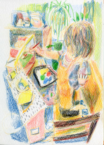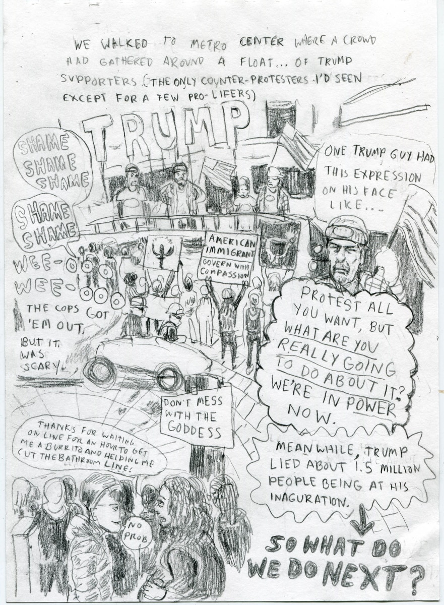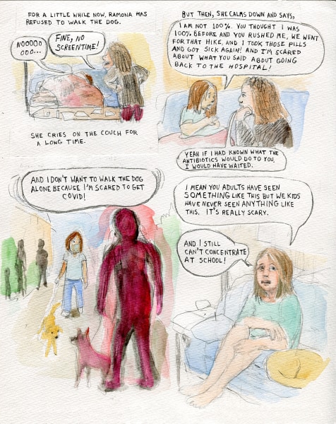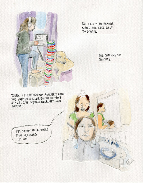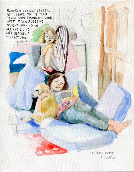 Since 2019 she has been the artist-in-residence at Town Clock, CDC, teaching art the survivors that live there. Her comic, “The Gift of Time” was featured on Slate.com. She received the Stone-Deguire Prize from her alma-mater, Washington University, to continue her work at Town Clock.