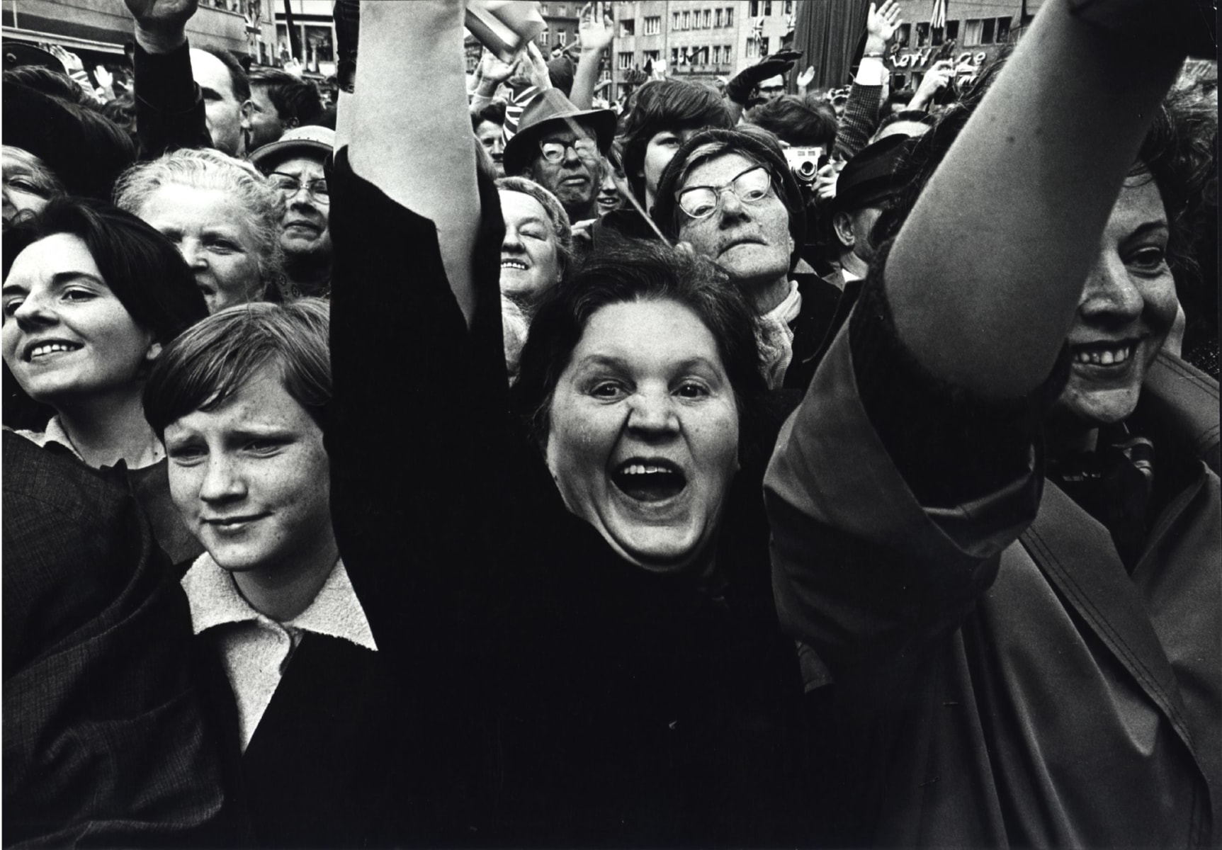 With my camera I climb over the perspiring human surfaces and view the cavities, the molars. The roar of the voices sounds like the great Niagara Falls pounding the earth's surface. And as man wants to know nature's language, so I want to know this German sea, Bonn, West Germany, 1965
