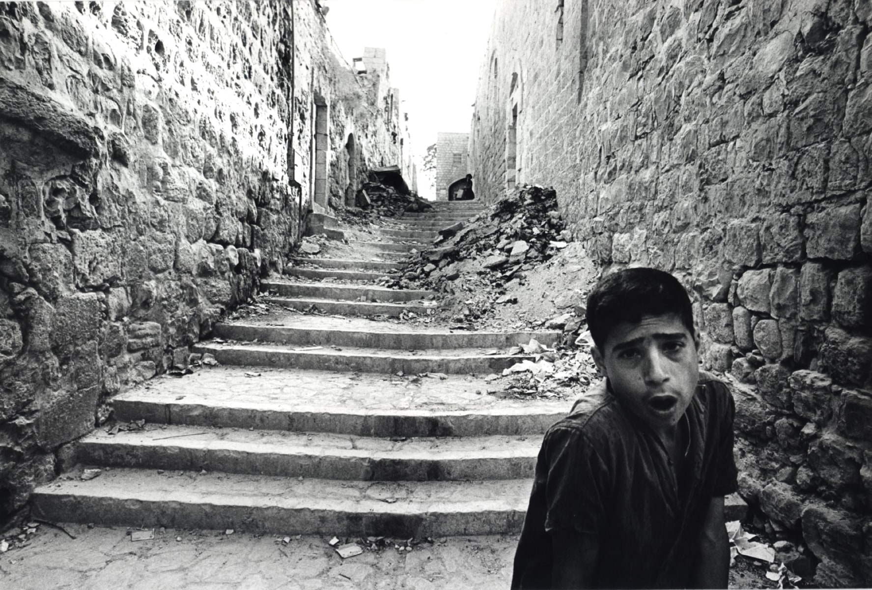Photographer's copyright stamp and Concerned Photographer exhibition credit stamps verso; Hebrew annotations verso