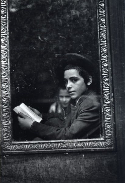 A Hasidic Student on the School Doorway Studying, New York, New York, 1954