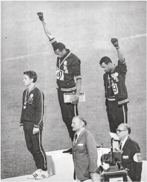 October 17th: Tommie C. Smith and John Carlos hold up black gloved fists in protest of racial inequality