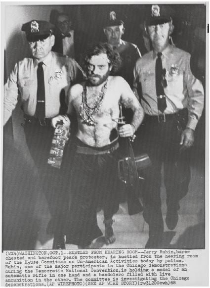 October 1st: Jerry Rubin, a peace protestor whose demonstration interrupted the Democratic National