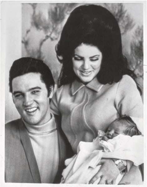 February 9th: Elvis and Priscilla Presley with their newborn daughter, Lisa Marie