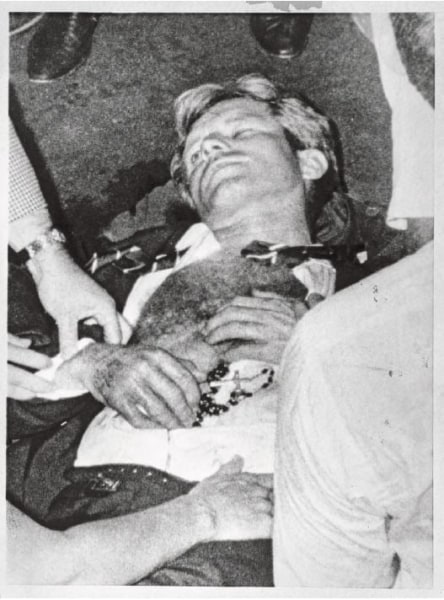 June 4th: Senator Robert F. Kennedy on the floor of the Ambassador Hotel shortly after being shot