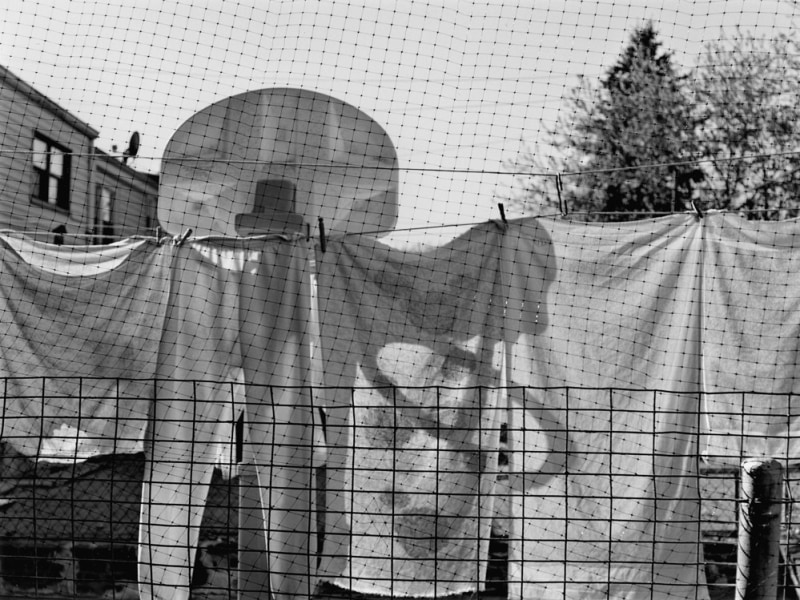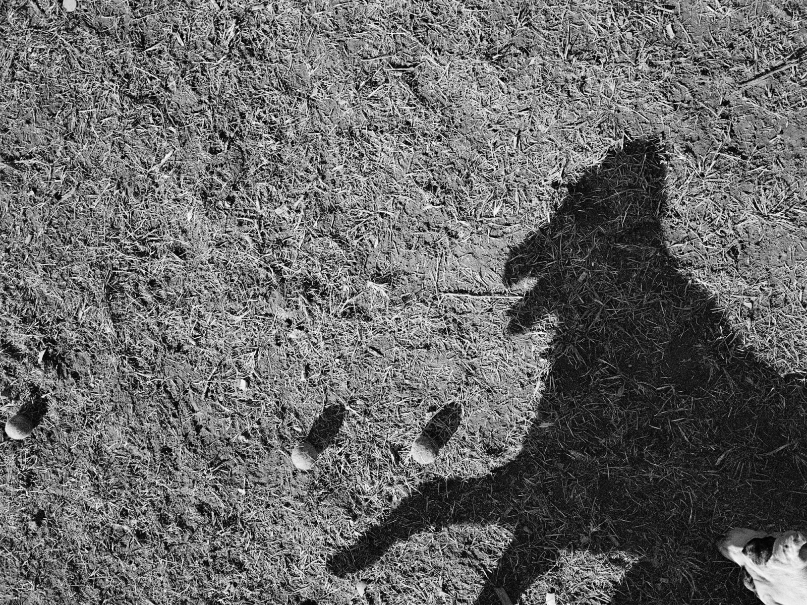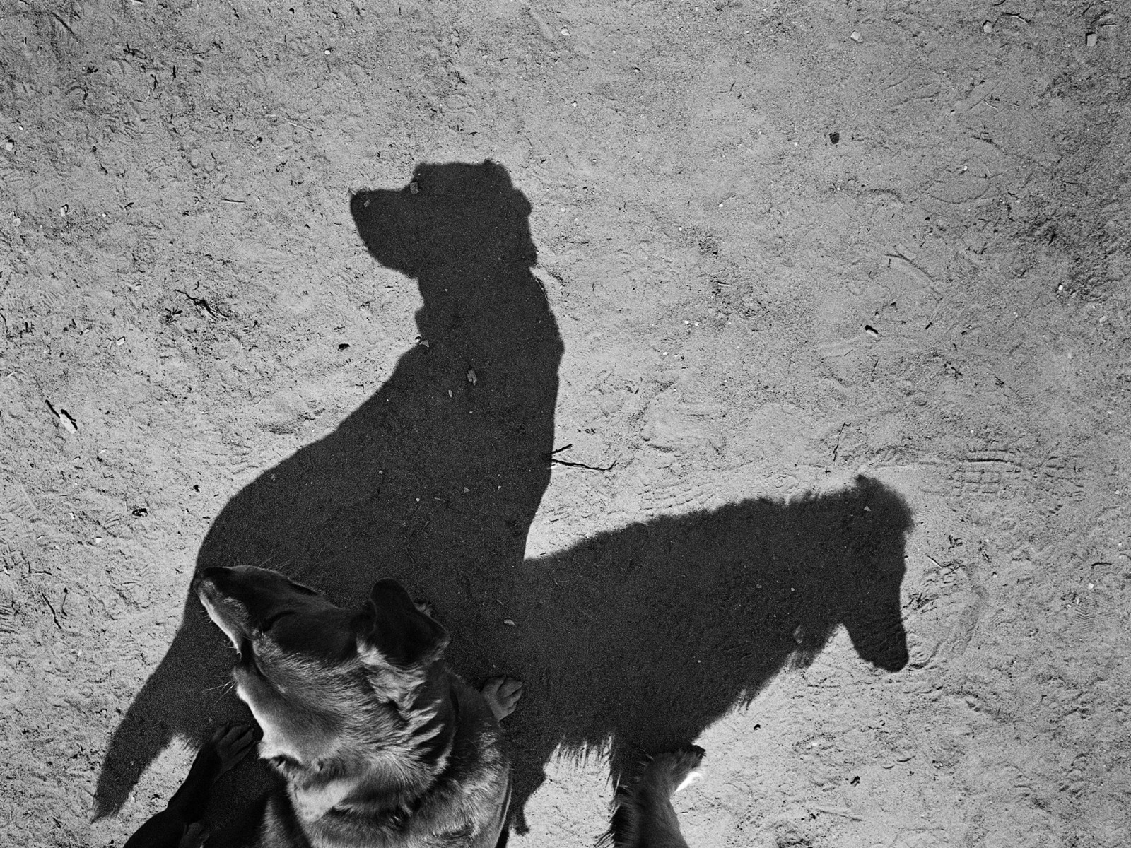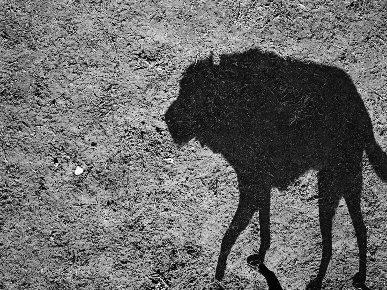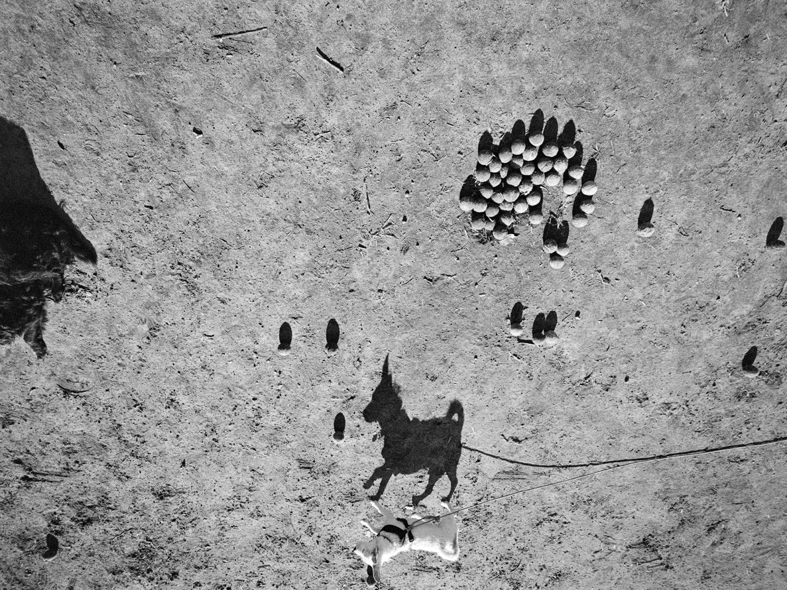 Reminscent of cave paintings, the distorted and featureless silhouettes in Plato’s Dogs capture the primitive essence of the animal. Printed life-size, the shadows more resemble a mythical beast than man’s best friend. Taken between 2011-2013 in a dog park in Dyker Heights, Brooklyn, Roma describes them as “landscapes with shadows.” Often Roma would look first to the ground, locating a spot composed of roots, patches of trampled grass, rocks and debris. Roma would stick to that spot and try to lure the dogs over to him. A highly creative technical engineer who builds all of his own camera equipment, Roma faced the challenge of how to prevent his shadow from showing up in each frame. He purchased an eight-foot painter’s extension pole. He mounted his camera to the pole and connected an extra long cable release to activate the shutter. As Giancarlo Roma writes in the books’ introduction, Armed with this contraption he alternately looked like a shepherd leading his flock with the pole as his staff, and a madman chasing the dogs around with some sort of homing device.”
