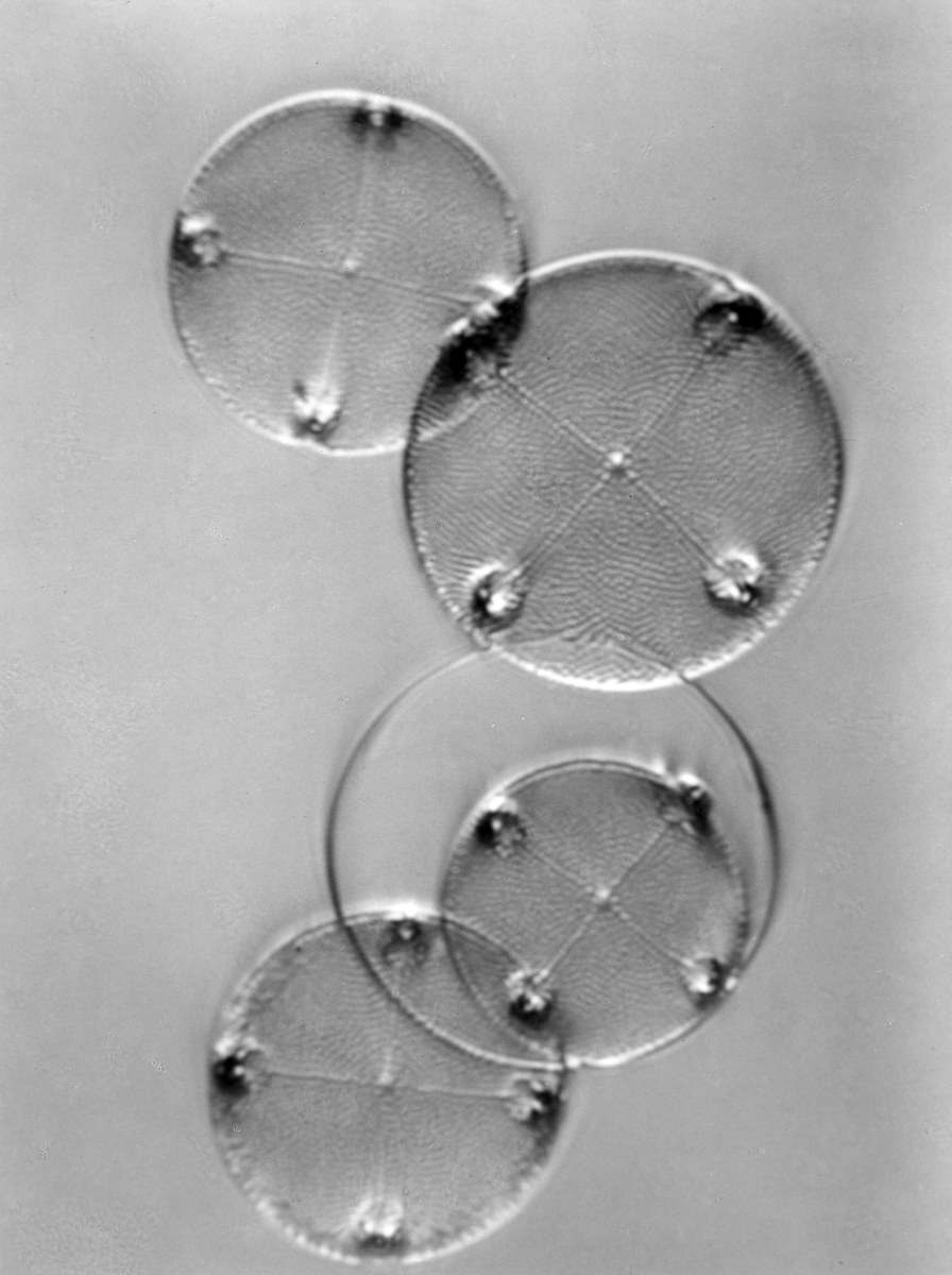 Carl Strüwe: “Zwei Mikrofotografien” (WVZ 1-065: Forms of Movement and Structure/Kapillargefasse; WVZ 1-092: Prototype of Individuality (Single Cells of Diatoms)/ Urbild der Individualitat), in Ann Thomas: Modernist Photography from the National Gallery of Canada, Cat., 2007, Picture 70.
