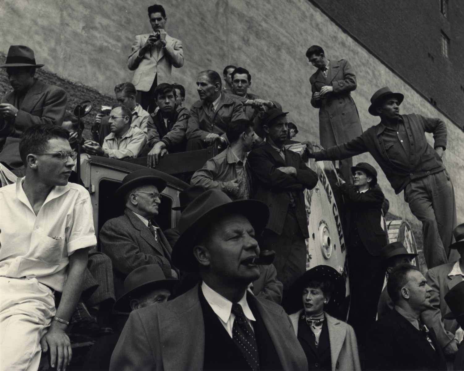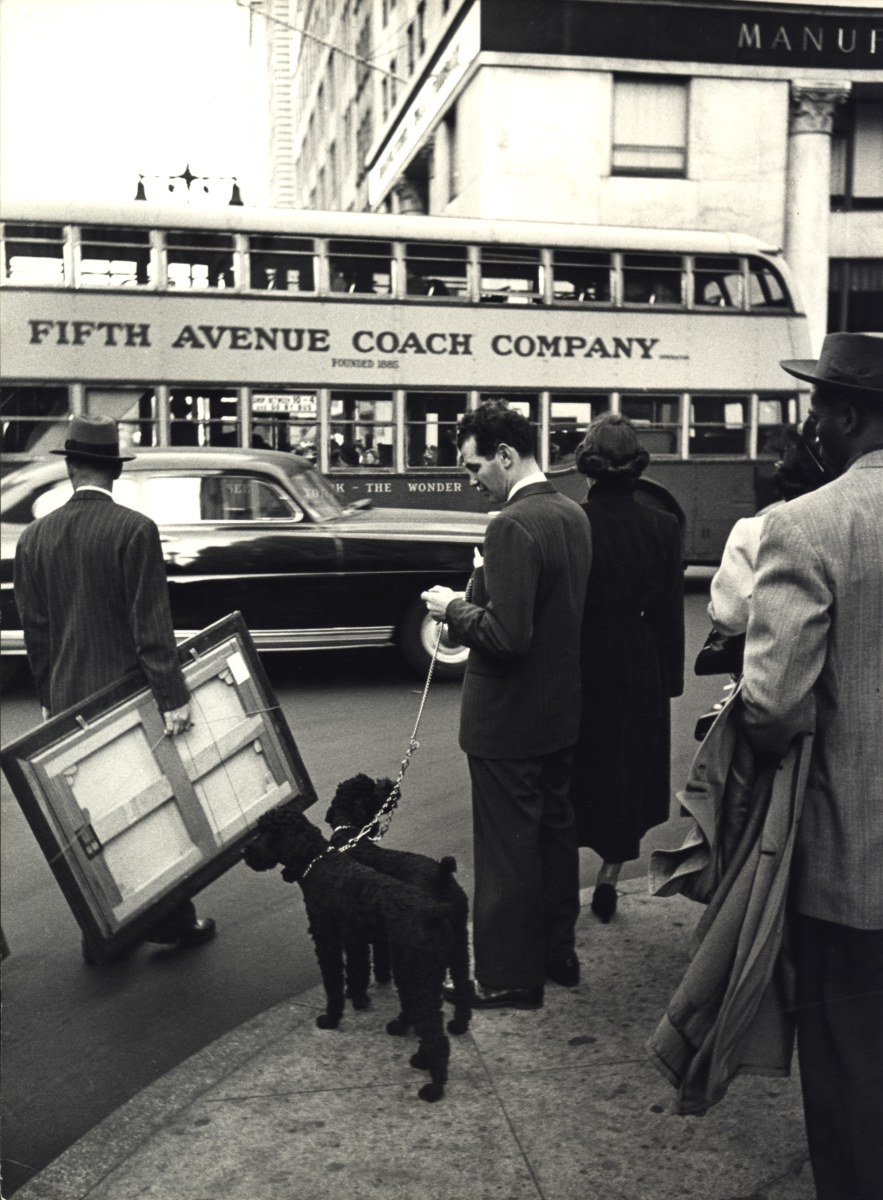 During this period, several of Weiner’s photographs were published in newspapers and magazines, including PM newspaper, Popular Photography, and U.S. Camera Annual. In 1942, he was drafted into the Air Force and served as a photographer and instructor throughout World War II. After the war, Weiner opened a commercial studio in New York and photographed women’s hats for catalogues. Also during this period, Weiner became increasingly involved with the Photo League, a cooperative of amateur and professional photographers in New York that Weiner had joined in 1940. Founded in 1936, the Photo League maintained darkrooms and meeting facilities, provided gallery space for exhibitions, sponsored workshops and projects, and operated a school. In addition to serving on the executive committee as vice president in 1947 and as executive secretary between 1948 and 1950, Weiner also taught at the Photo League School for a number of years. Before the League was forced to cease its activities in 1952, Weiner contributed several articles to Photo Notes, a periodical published by the organization.