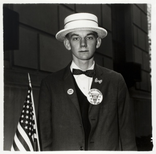 Boy with Straw Hat Waiting to March in a Pro War Parade, New York, 1967 Gelatin silver print, printed later Paper Size: 20 x 16 inches, Image Size: 14 1/2 x 14 1/2 inches