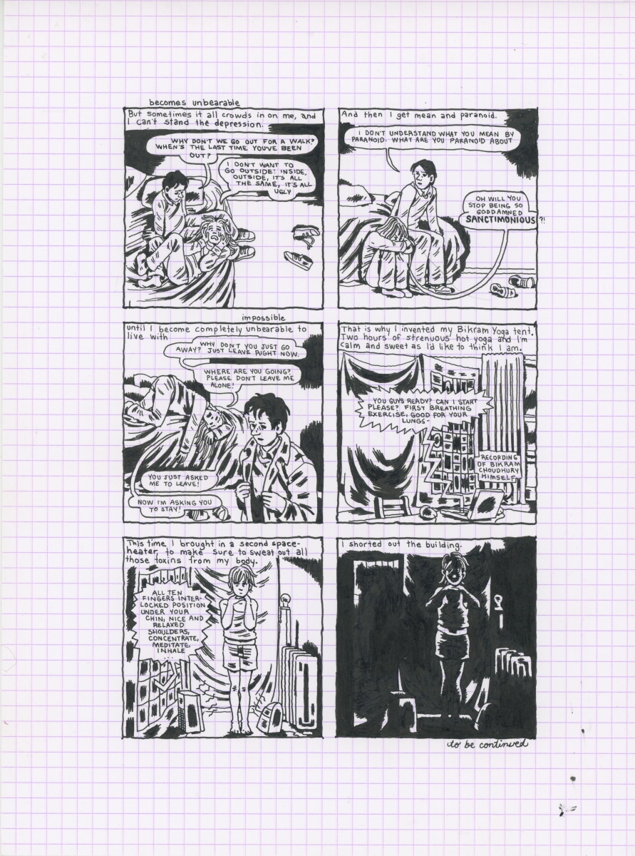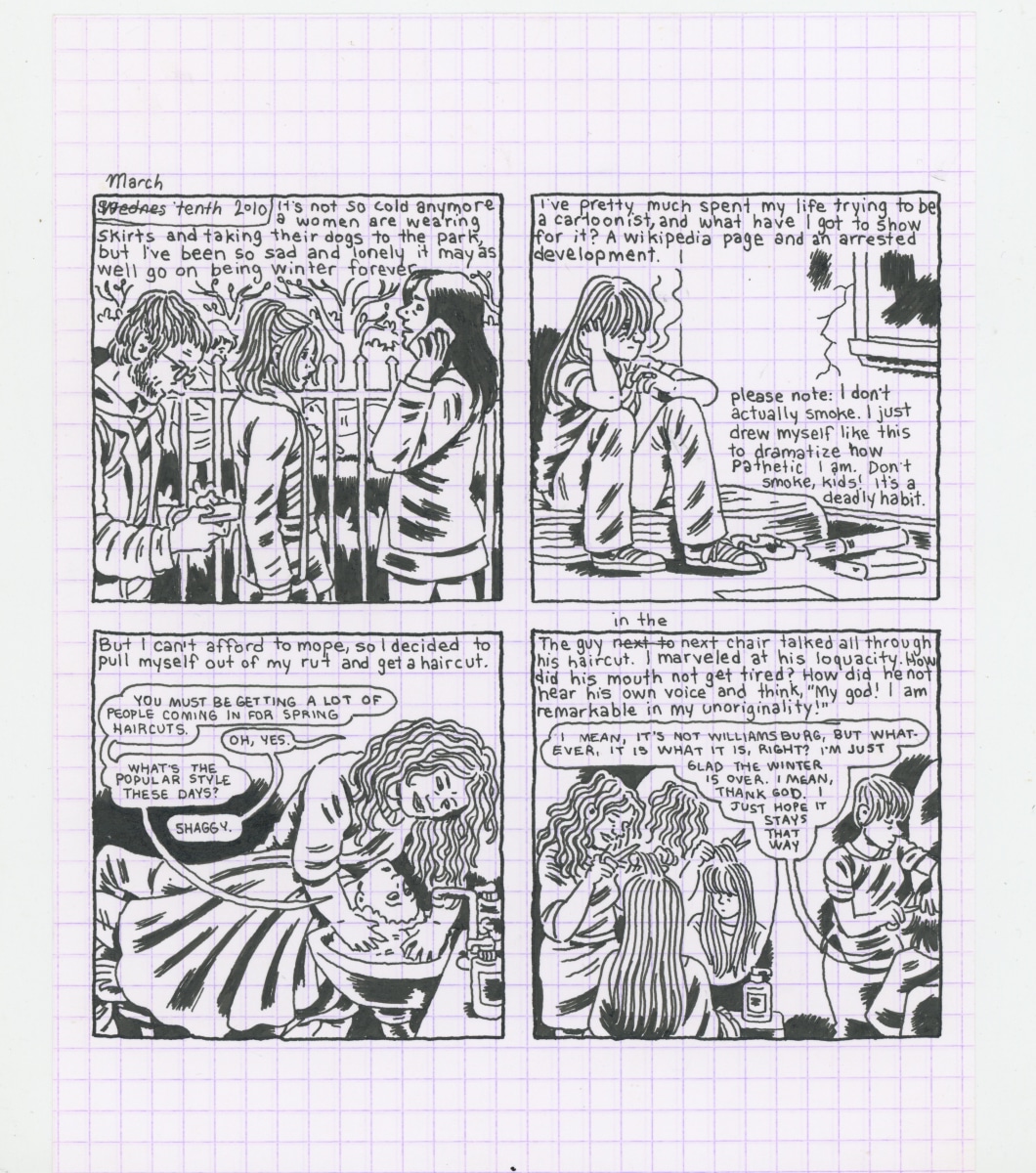 Gabrielle Bell was born in England and raised in California. In 1998 She began to collect her “Book of” miniseries (Book of Sleep, Book of Insomnia, Book of Black, etc), which resulted in When I’m Old and Other Stories, published by Alternative Comics. In 2001 she moved to New York and released her autobiographical series Lucky, published by Drawn and Quarterly. Her work has been selected for the 2007, 2009, 2010 and 2011 Best American Comics and the Yale Anthology of Graphic Fiction, and she has contributed to McSweeneys, Bookforum, The Believer, and Vice Magazine. The title story of Bell’s book, “Cecil and Jordan in New York” has been adapted for the film anthology Tokyo! by Michel Gondry. The film triptych was directed by Gondry, Leos Carax, and Bong Joon Ho. Bell’s graphic novel, The Voyeurs, was named one of the best books of the year by Publishers Weekly, Kirkus Reviews, and the Atlantic. Her first full-length graphic memoir, Everything is Flammable, was published in hardcover by Uncivilized Books in June 2017. Her follow up, Inappropriate, was published in January 2020 by Uncivilized Books. The collection of short comics was nominated for two Ignatz Awards (Outstanding Collection and Outstanding Story), a Forward Indies finalist, and named one of the best graphic novels of the year by Library Journal. She lives in Brooklyn, New York.