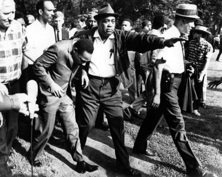 Anonymous Martin Luther King Jr., Protest March, Hit by a Rock, Chicago, IL, ca. 1966 Vintage gelatin silver, printed ca. 1966 7 x 9 inches