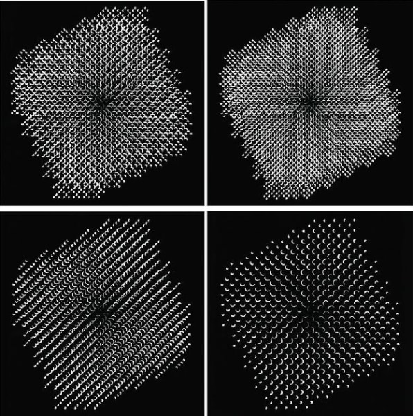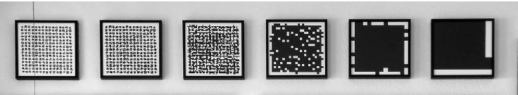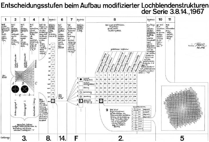 Jäger has a methodical, mathematical approach to photography. His photographs focus on seriality, the logic of machines, and a precisely controlled and repeatable process. These structure-based images are created using programs that make explicit reference to computer programs. They work with signs, a defined program, and the random possibilities given by the program. Jäger’s early programmatic approach to photography has established him as one of the first generation of computer artists. His work was included in some of the most iconic exhibitions around technological and computer art of the 1960s: Experiments in Art and Technology at the Brooklyn Museum, (1968); New Tendencies in Zagreb (1969); and the exhibitions On the Path to Computer Art that were shown in Germany, Switzerland, Japan, Brazil, France, and England between 1970 and 1976.
