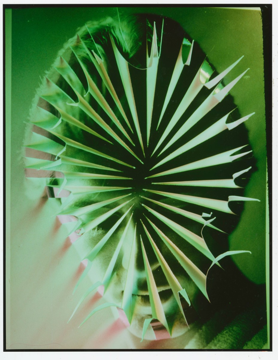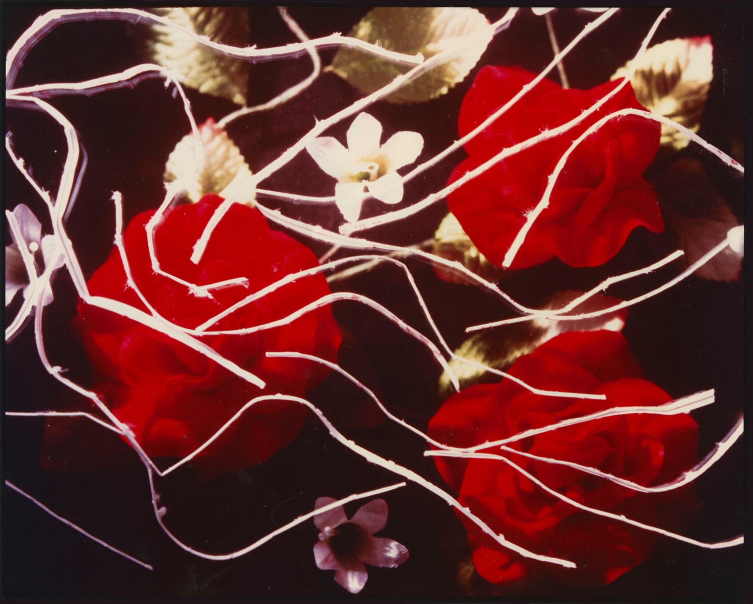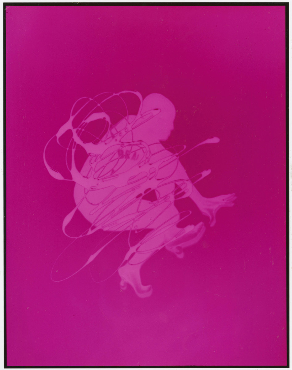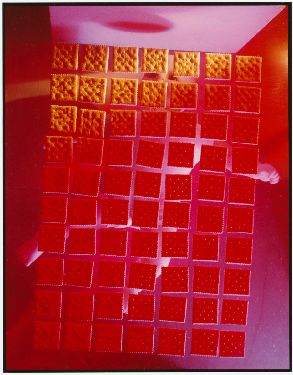 DeSana made these images after contracting AIDS and suffering a spleen removal operation. In many of these images the human body, DeSana’s most enduring subject, is conspicuously absent. Faced with his own mortality, DeSana began to focus on studio props rather than people interacting with them. He eschewed working with models and focused on experimenting privately with processes of collage, photographing through transparent surfaces, and self-portraiture. His signature gel-covered tungsten lights remain. Stripped of their context, objects associated with suburbia and sex, such as a spoon, a baseball, shaving cream and aluminum foil come to embody feelings about primal beginnings and ends. He addresses this idea directly in a 1990 interview with Laurie Simmons: