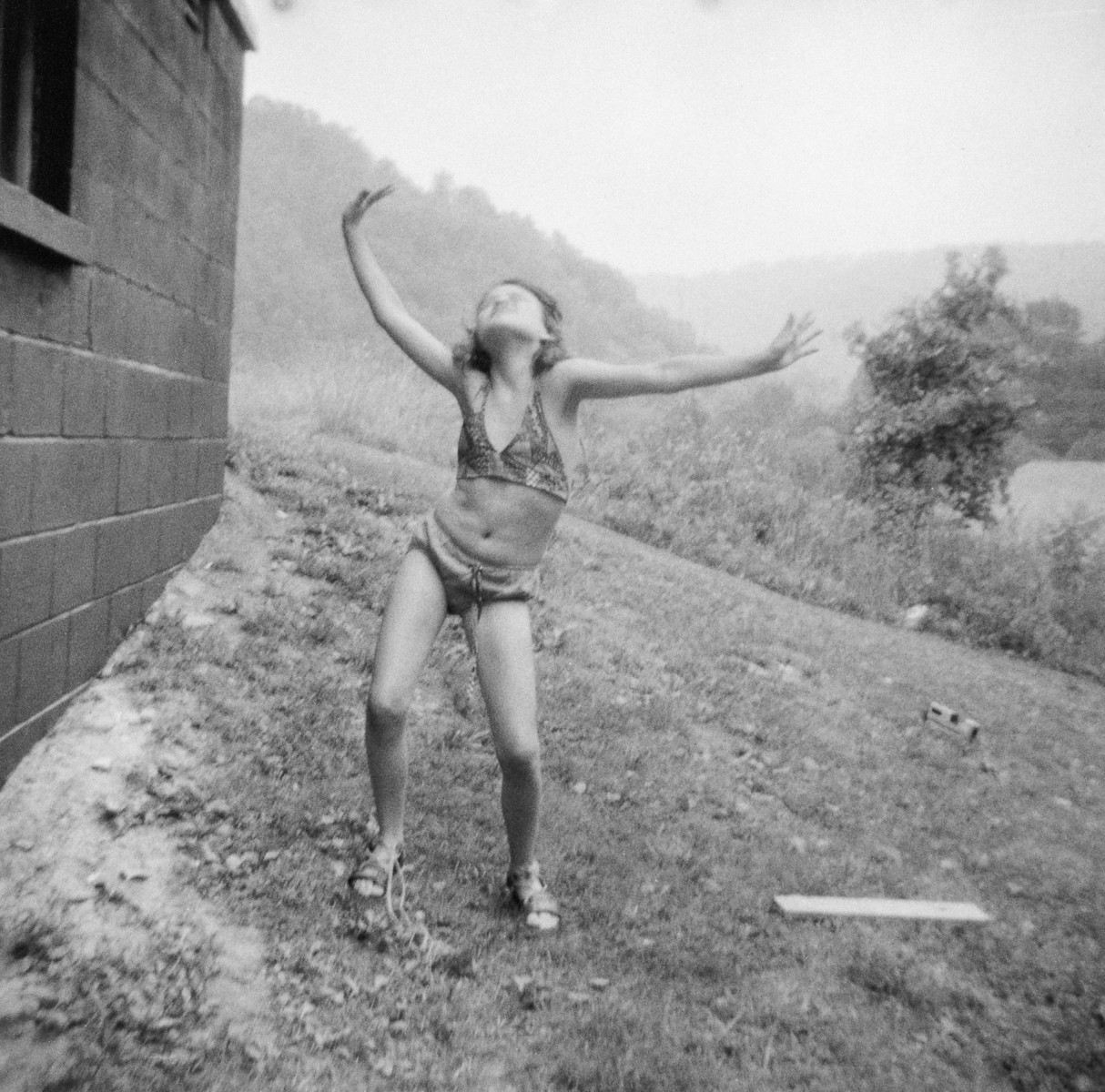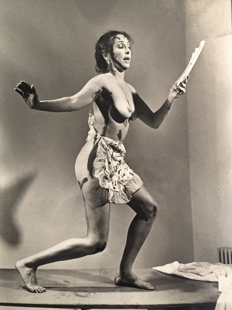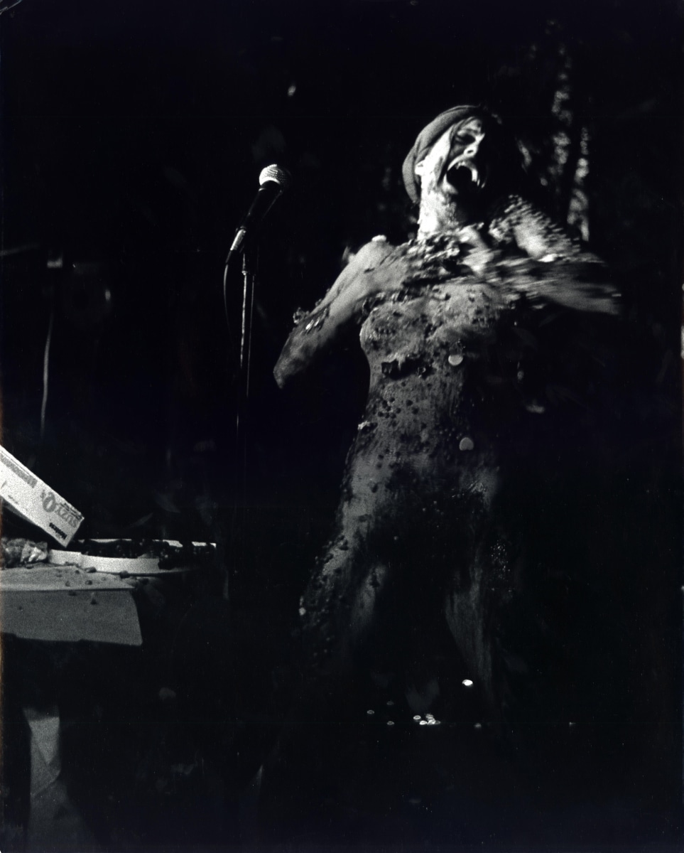 Artist Carolee Schneemann at a private first performance of Interior Scroll, at an art show titled Women Here and Now, honoring the United Nations’ International Women’s Year, in East Hampton, August 29, 1975