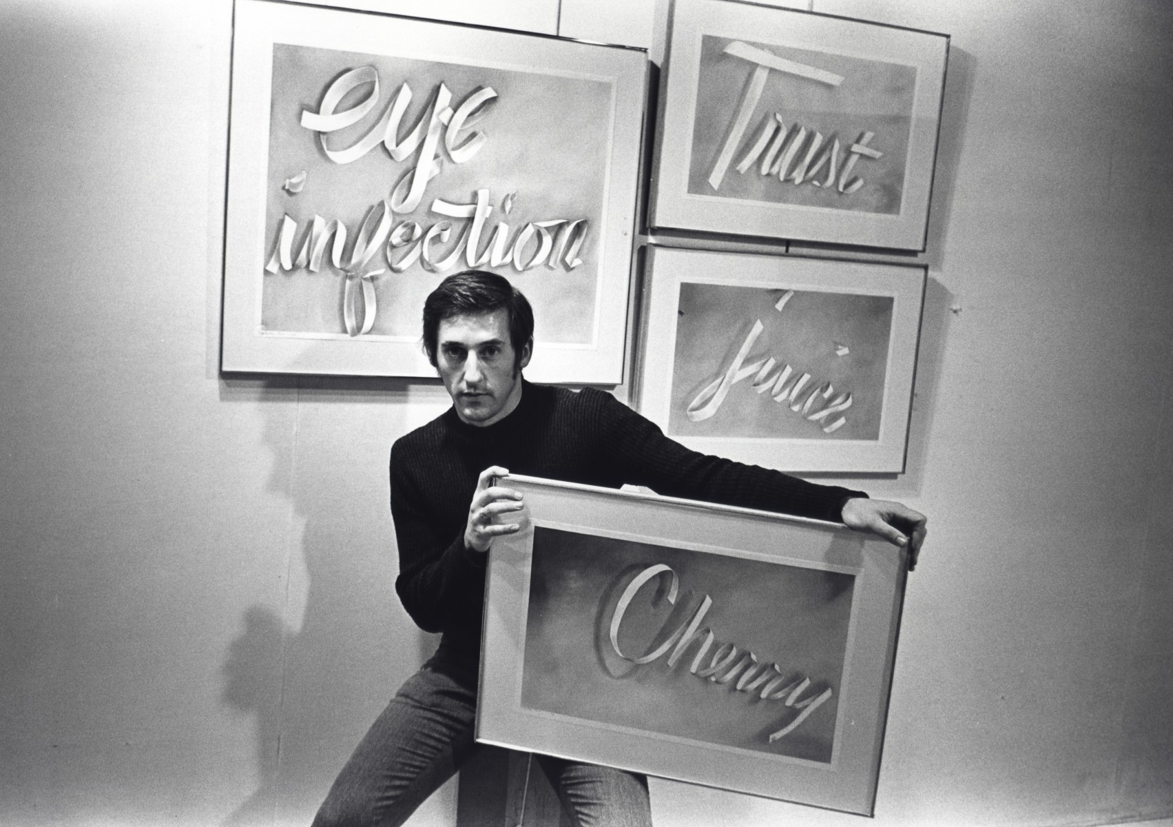 Artist Ed Ruscha with some of his “gunpowder ribbon drawings”, December 9, 1967