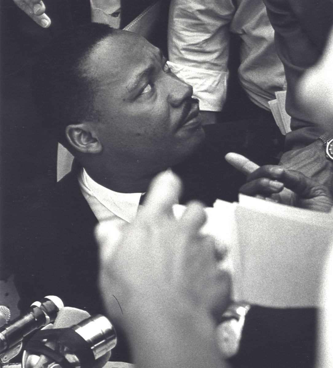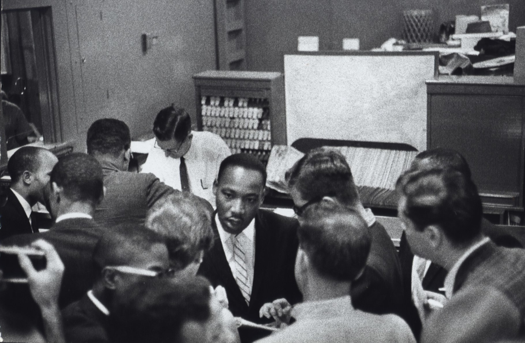 Martin Luther King Jr. Talks to the Press in the Trailway Station During the Freedom Rides, Montgomery, Alabama, 1961