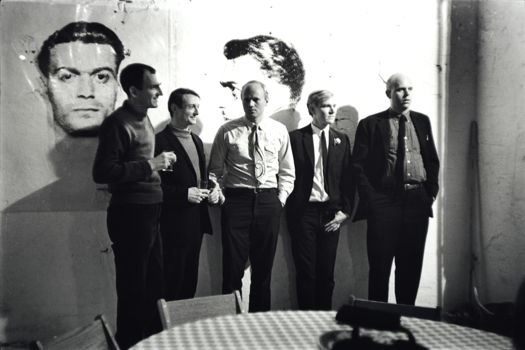 Pop artists Tom Wesselmann, Roy Lichtenstein, James Rosenquist, Andy Warhol, and Claes Oldenburg at Warhol’s Factory, 231 East Forty‑Seventh Street (its first location, until 1967), April 21, 1964