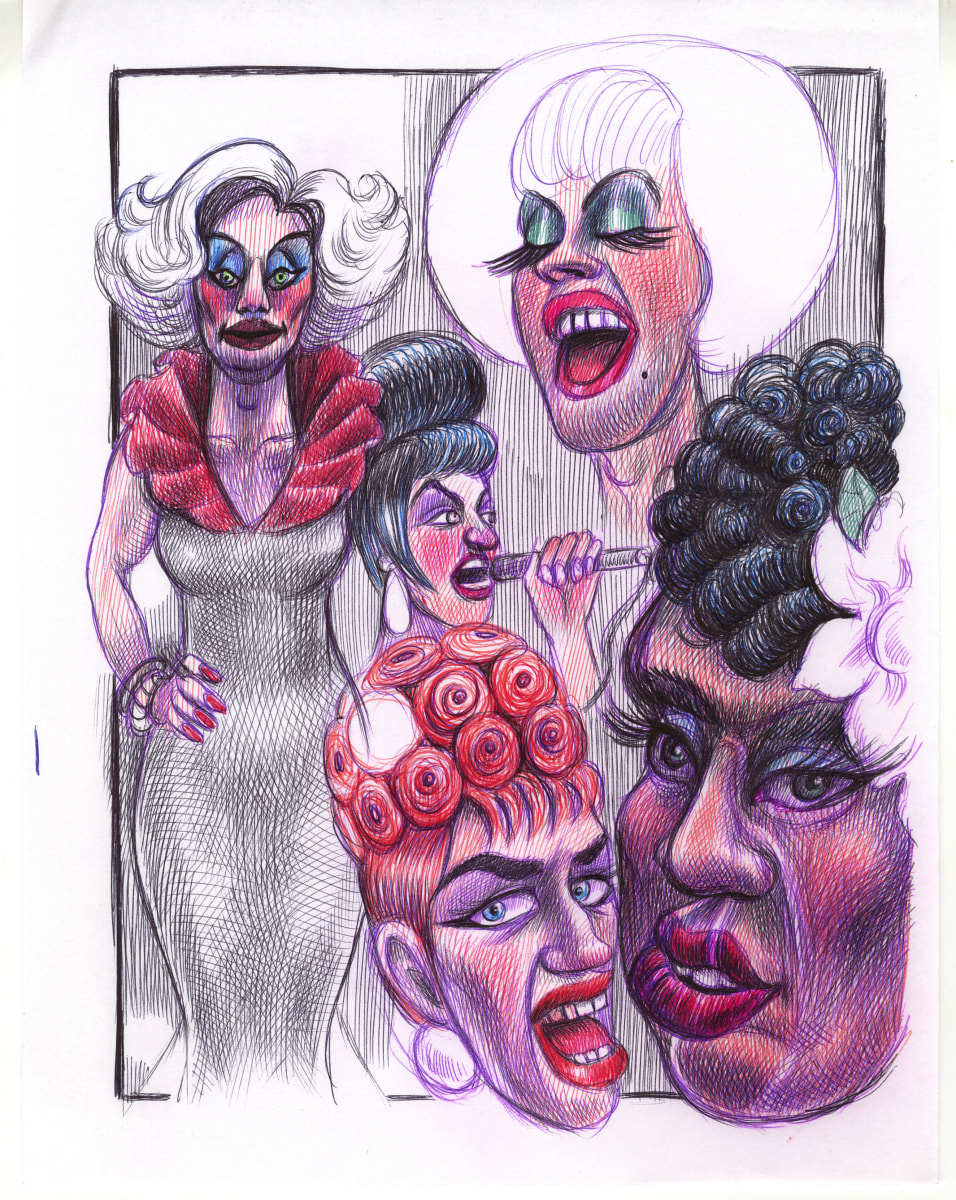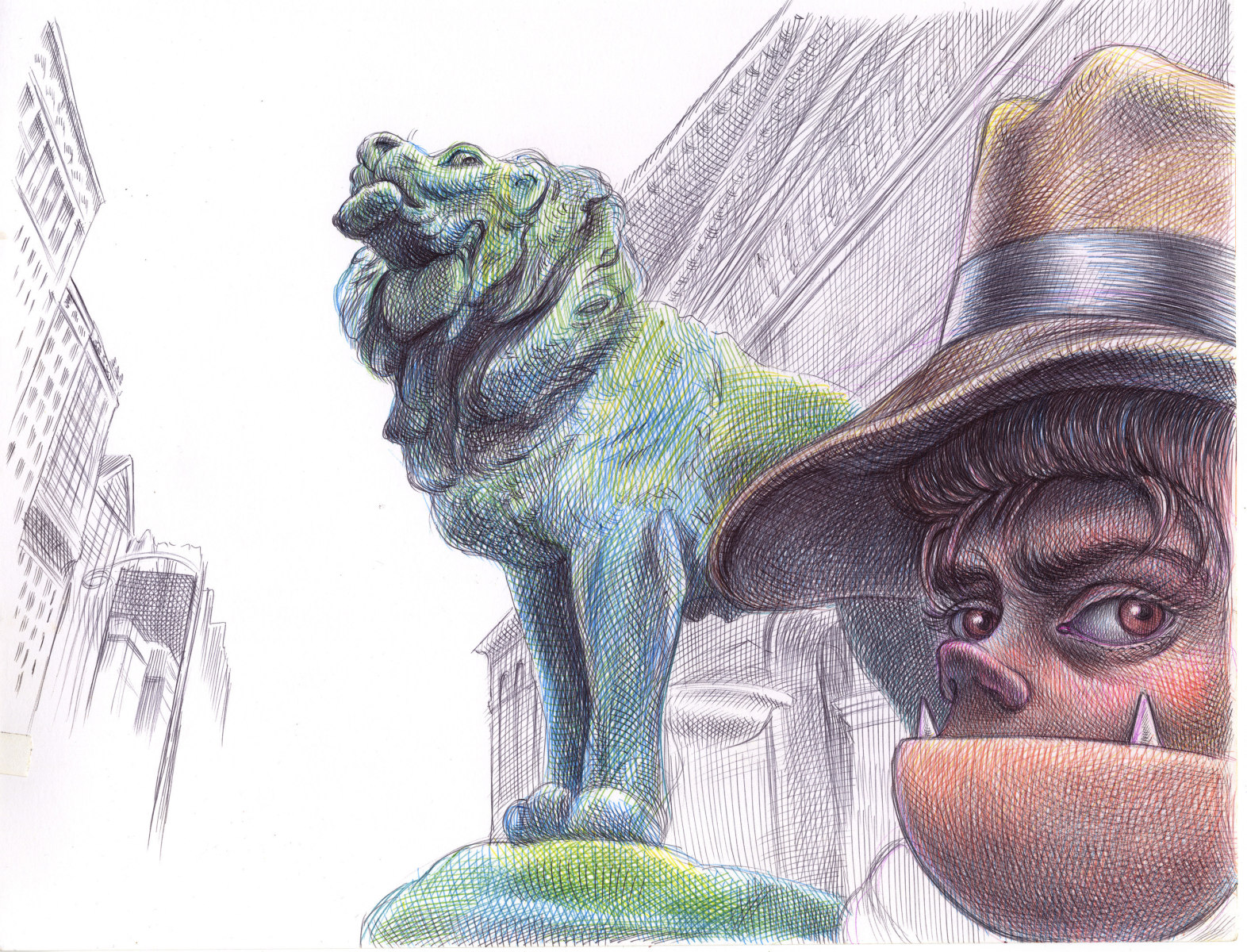 India ink, bic pen, markers, pencil, and watercolor on paper