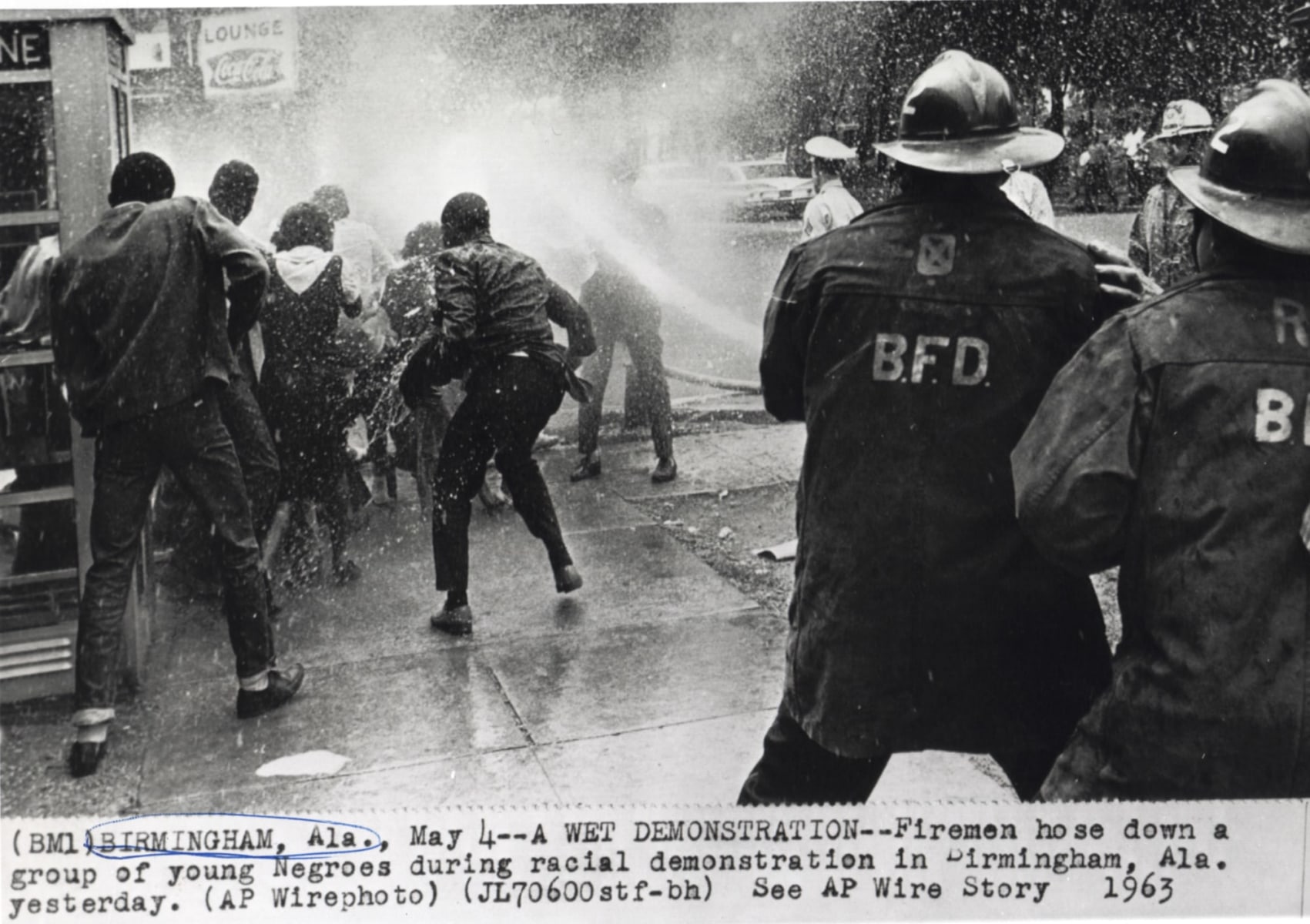 Alabama Fire Department Aims High-Pressure Water Hoses at Civil Rights Demonstrators, Birmingham Protests, May 3, 1963