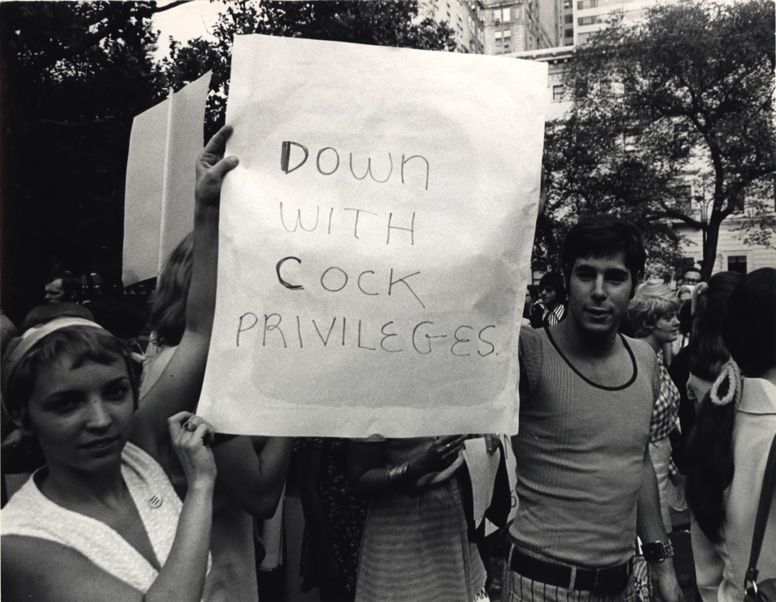 Women's Liberation Protesters Carrying "Down With Cock Privileges" Sign, New York, NY, ca. 1970