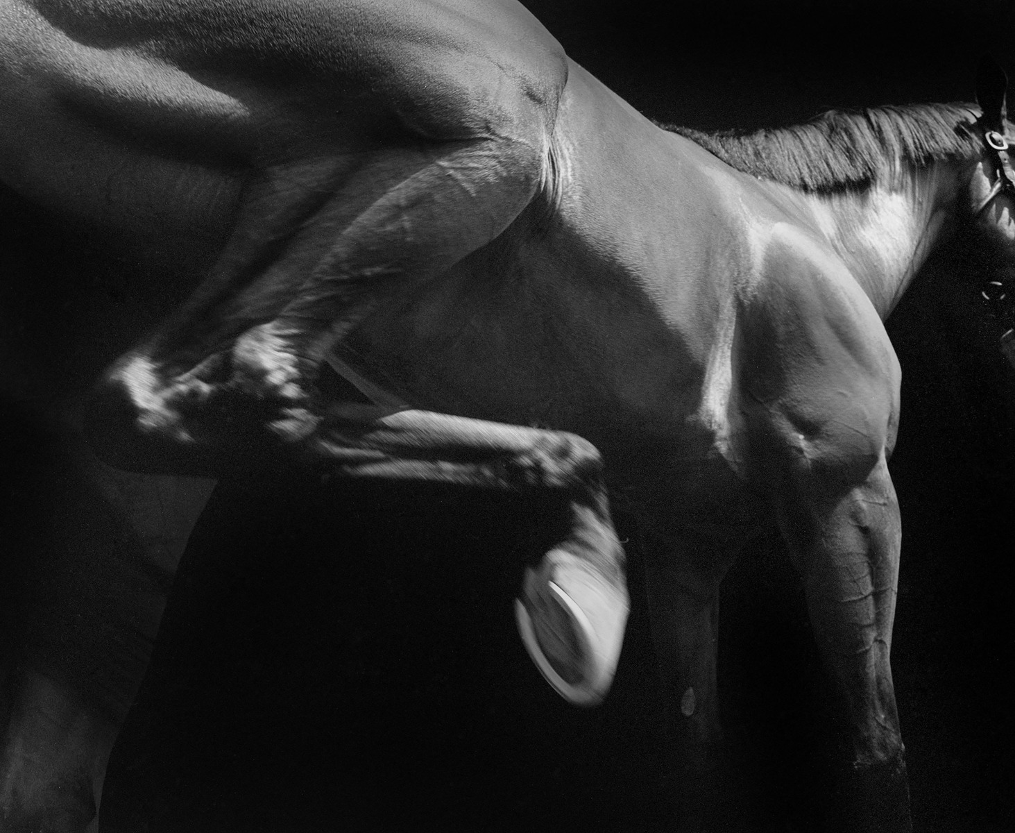 In 2013, Latham took a drive from New York City north into horse country to clear his head after his mother’s passing. “I remember the instant it happened. I saw the muscular shoulder of a horse standing by a fence, and I flashed on my mother’s similar back shoulder as she worked in her rose garden. I stopped breathing. I hit the brakes and stared.” Then he did what came naturally as a photographer: he reached for his camera and began to photograph. “The muscular definition and power of the animal was intriguing to me. I tapped into something in that split second, and it linked to my mother. I felt compelled to discover what the connection was.” What he recorded that day on film launched him on a three-year journey to explore the enigma of the American Thoroughbred.