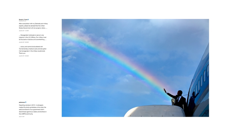 When Pete Souza left the White House in 2017, he didn’t know what it meant to “throw shade”—but he started doing it almost immediately on his personal Instagram account, posting his photographs from the Obama years with captions that vividly define the contrast between the Obama White House and President Trump’s administration. Media organizations took notice of Souza’s posts. New York magazine called them “a master class in shade,” CNN described them as “a silent, social media, shade-throwing protest told in visuals,” and Politico named Souza “King of Instagram Shade.” Souza calls it telling the truth. His following on Instagram is now close to two million people.