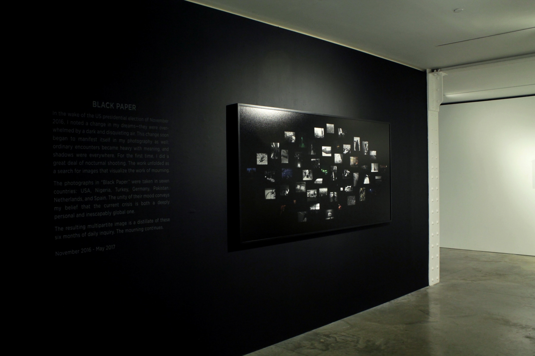 The exhibition also presents Black Paper, a visceral photographic response to Cole’s experiences following the election of November 2016. This continuously evolving, large-scale work explores buried feelings, haunted space, and all that can be seen through darkness.