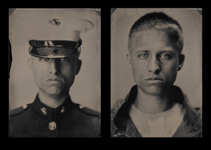 Opening 5/20 at the National Museum of the Marine Corps: Melissa Cacciola's "War and Peace" a series of tintype diptychs showing service men and women in uniform and civilian attire exploring war, identity and the meaning of serving their country.