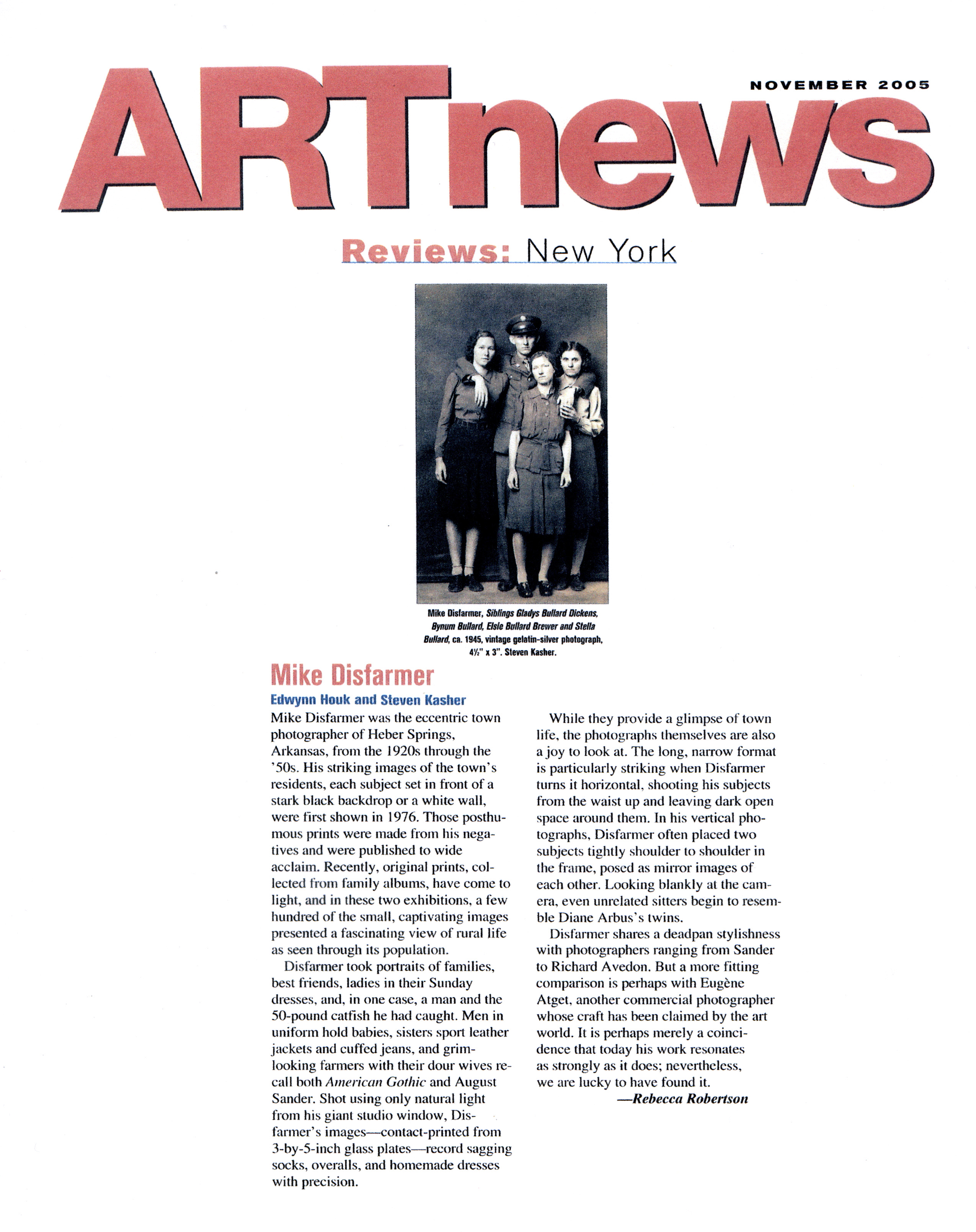 The November issue of Art News reviews the late photographer Mike Disfarmer.